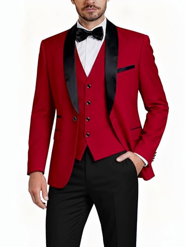 Hihawk Mens 3 Piece Tuxedo Set with Bow Tie, One Button Shawl Lapel Jacket Vest Pants, Slim Fit Suit Party Wedding Prom Tux