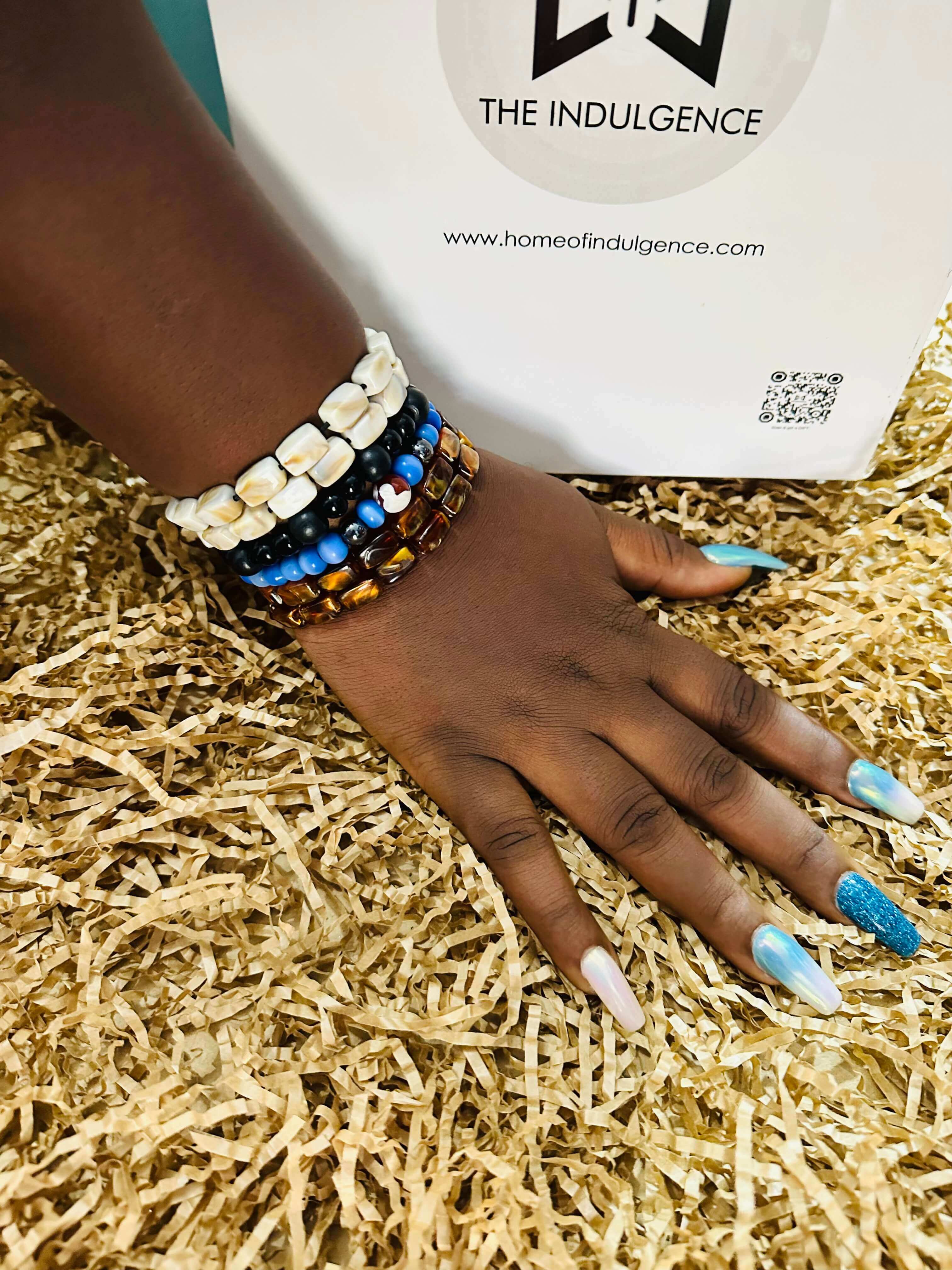 Enyonam – Women fashion stackable Bracelet set – white, black, blue and gold